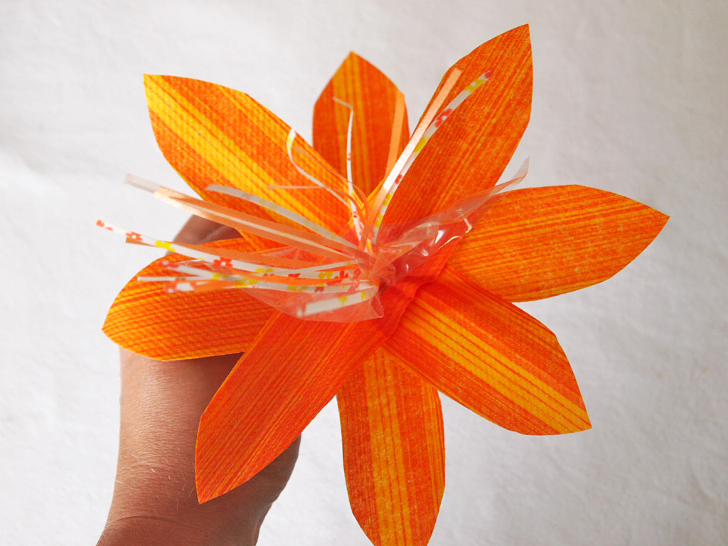 Stecken Sie jetzt die Blüte mit den Losen durch das Loch der Serviette.