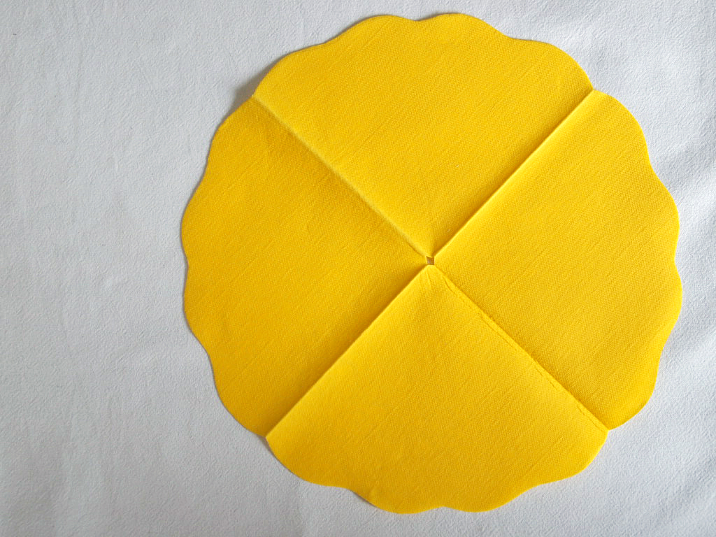 Schneiden Sie nun die zweite Serviette zu einem Kreis oder wie in diesem Beispiel in einen Kreis mit gewelltem Rand. In der Mitte machen Sie ein Loch.