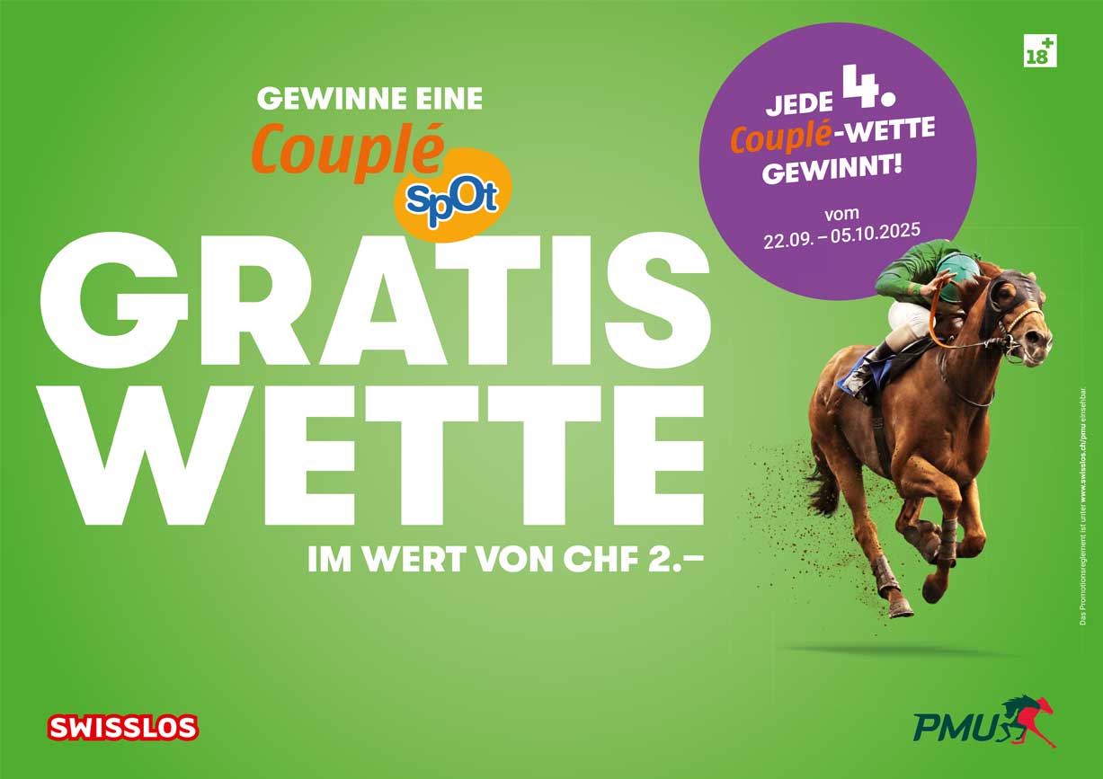 Gewinne eine Couplé Spot Wette im Wert von CHF 2.-