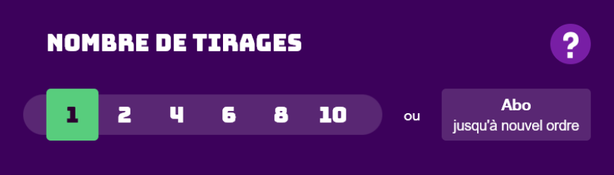 2. Sélectionnez la quantité de tirages consécutifs auxquels vos grilles devront participer : 1, 2, 4, 6, 8 ou 10 tirages.
