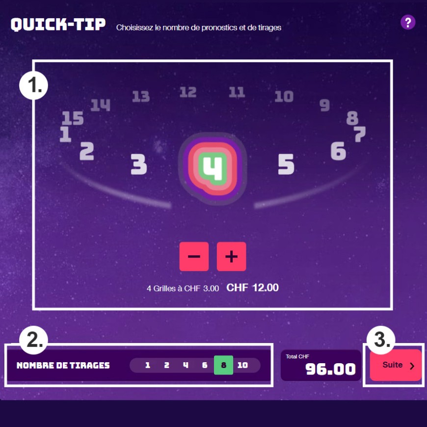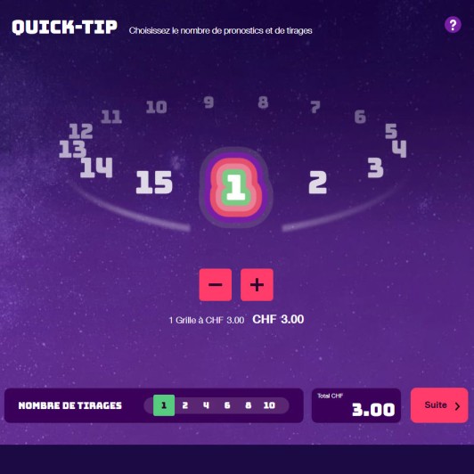 Une grille coûte 3 francs. Il est possible de jouer un maximum de 15 grilles.